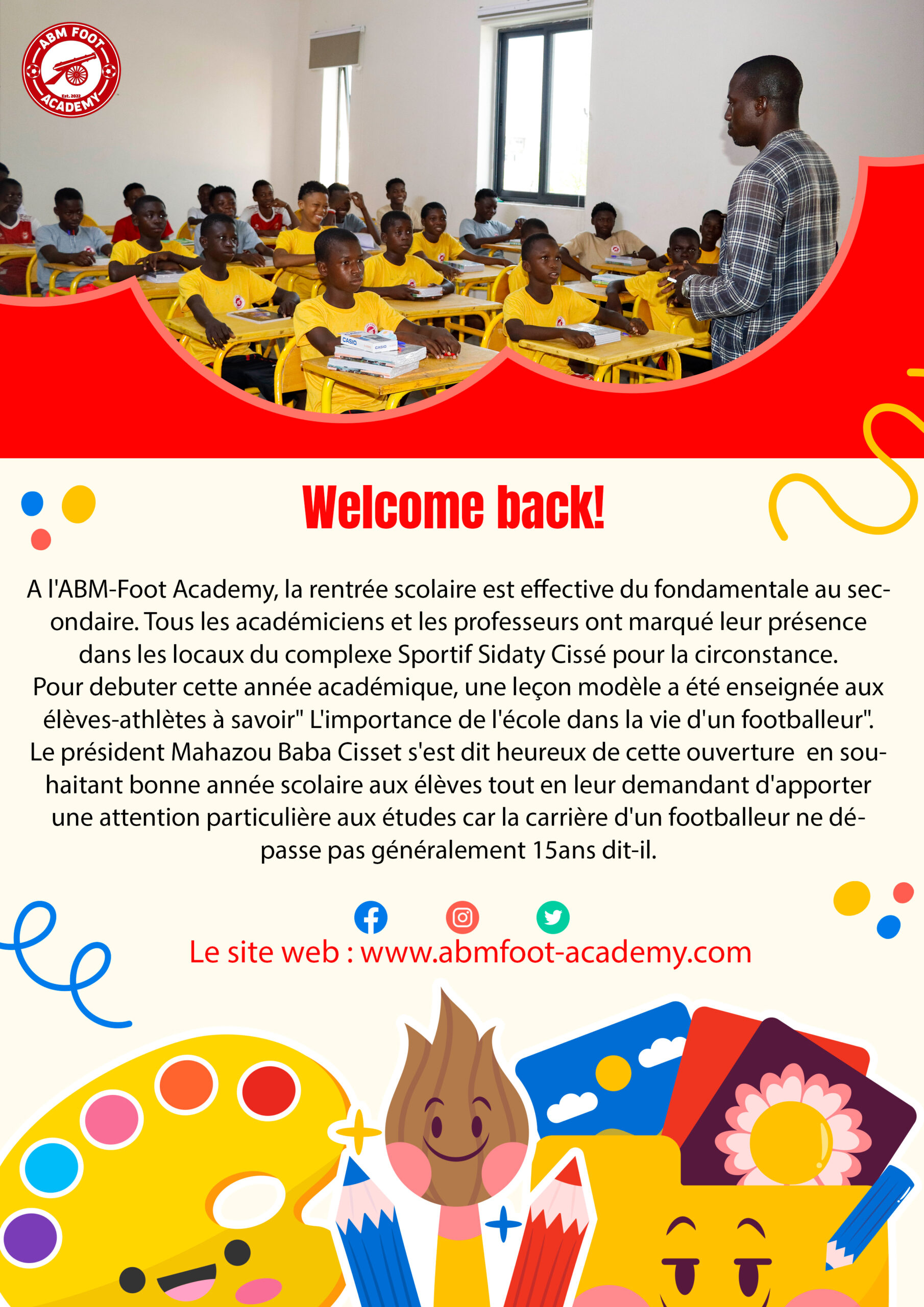 ABM Foot est ravi d’annoncer que nos deux entraîneurs, Coach Harouna Diarra et Coach Brehima Traore dit Boura-Blè ont débuté ce matin leur formation pour obtenir la prestigieuse Licence CAF…[...]